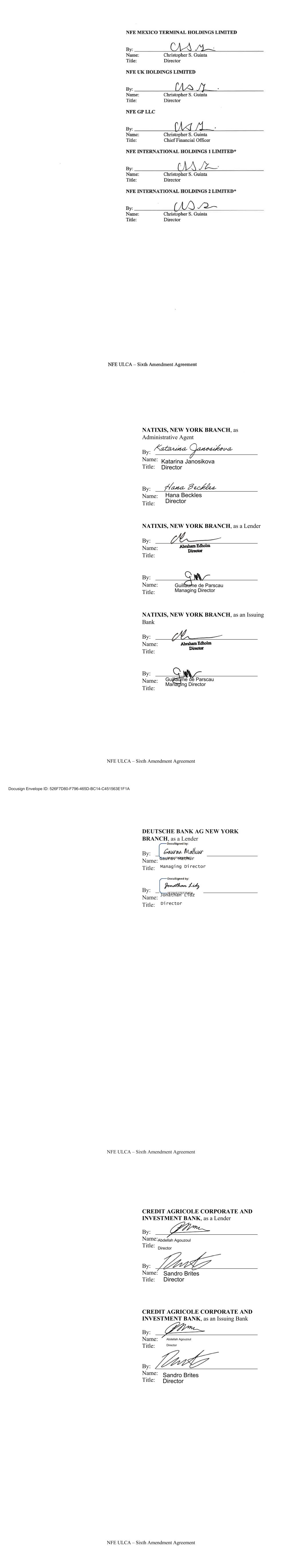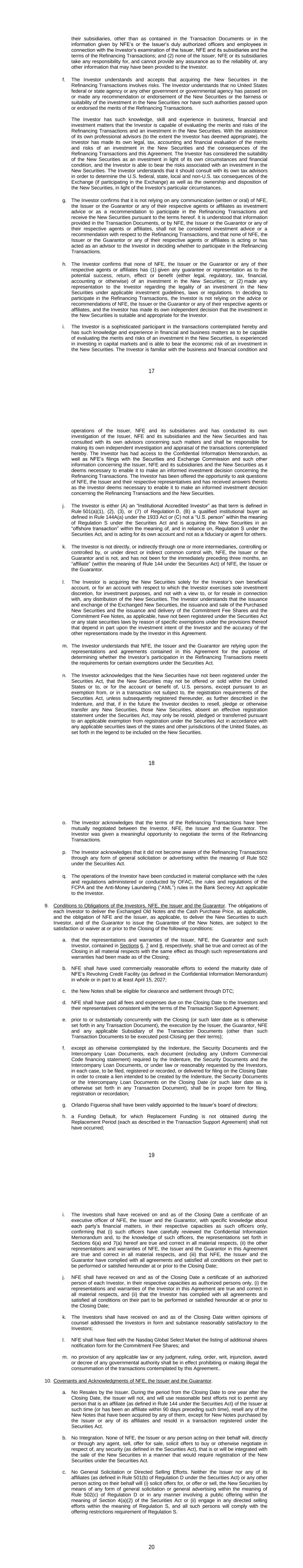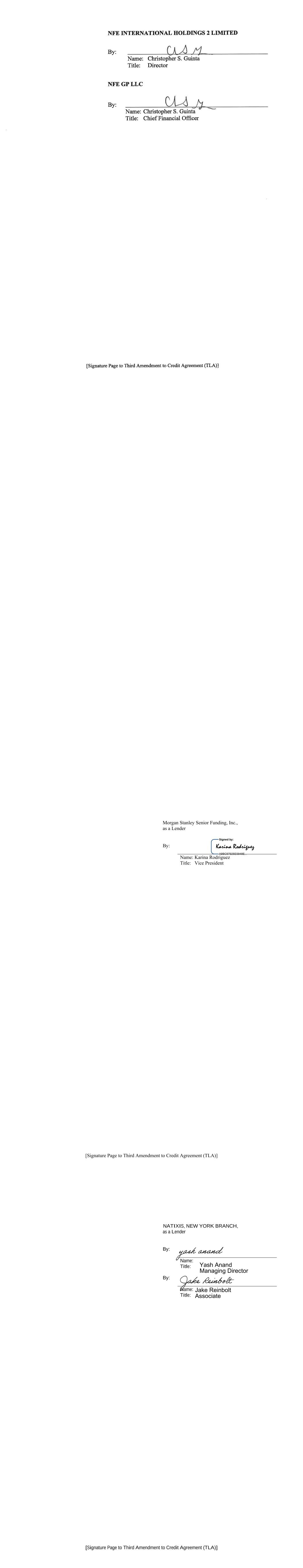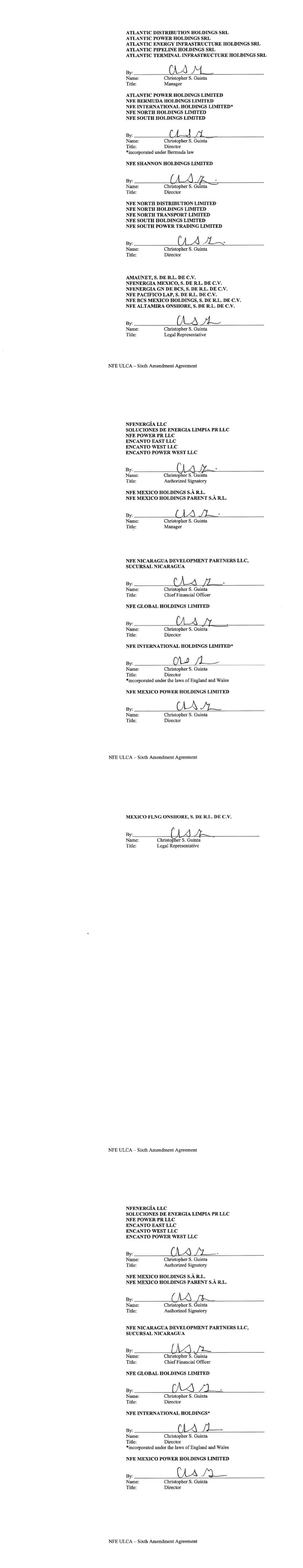177 NFE Vessel Holdings LLC 178 NFE Vessel Management LLC 179 NFE Vessel Operations LLC 180 NFE Winter US LLC 181 NFE Winter US LP 182 NFEnergía GN de BCS S. de R.L. de C.V. 183 NFEnergia Honduras S. de R.L. 184 NFEnergia LLC 185 NFEnergia Mexico S. de R.L. de C.V. 186 NFI Equity Holdings LLC 187 NuevaGen Power Holdings LLC 188 NuevaGen Power LLC 189 PA Development Holdings LLC 190 PA Real Estate Holdings LLC 191 PA Real Estate Partners LLC 192 Path Ltd. 193 Portocem Geração de Energia S.A. 194 PT Golar Indonesia 195 Rovema Equipment LLC 196 Rovema Equipment LP 197 Shannon LNG Energy Limited 198 Shannon LNG Limited 199 Soluciones de Energia Limpia PR LLC 200 TICO Development Partners Holdings LLC 201 TICO Development Partners LLC 202 Usina Teremeletrica de Lins S.A. 203 ZeroPark I LLC 204 ZeroPark II LLC 205 ZeroParks Holdings LLC 206 ZeroParks Inc. 207 ZeroParks Intermediate Holdings LLC 208 ZeroParks Management LLC 209 ZeroParks Marketing LLC 210 ZeroParks Permits LLC 211 NFE Brazil Investments LLC