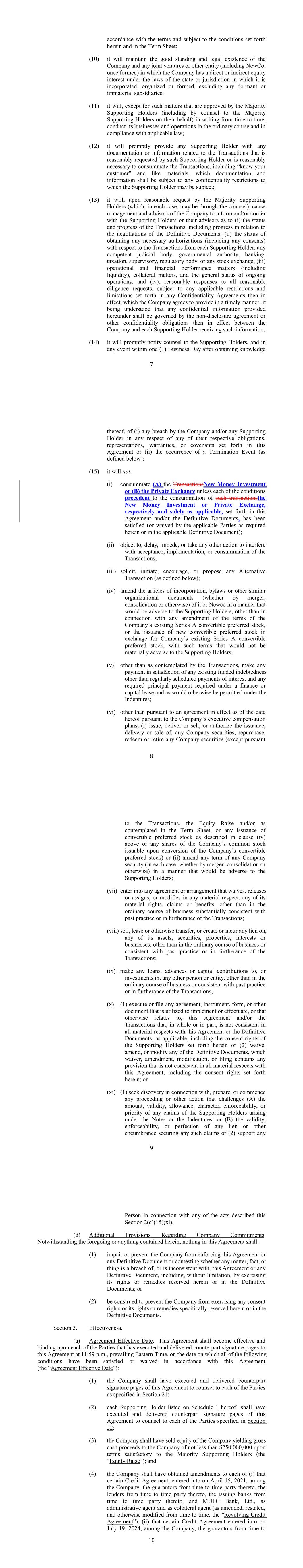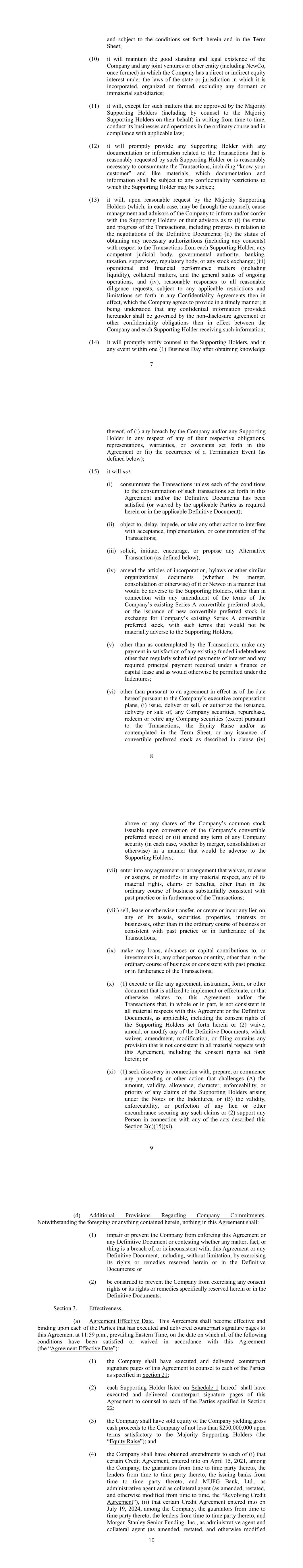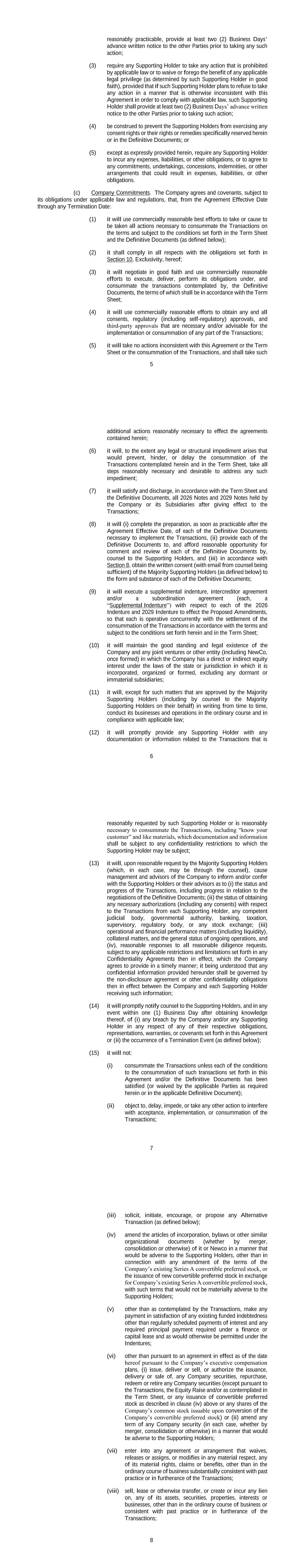 •adequately addressing the substantial doubt as to our ability to continue as a going concern and satisfy our liquidity needs, including the consummation of our refinancing transactions intended to extend our debt maturities and enhance our liquidity;