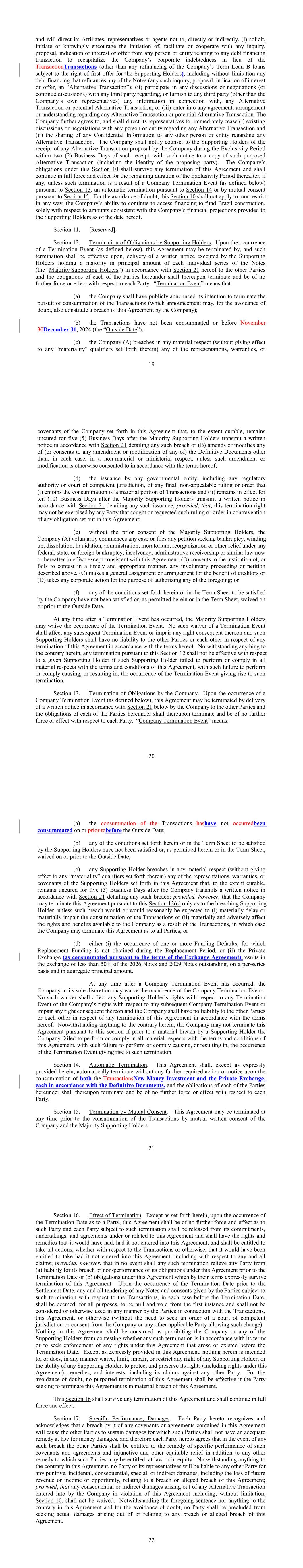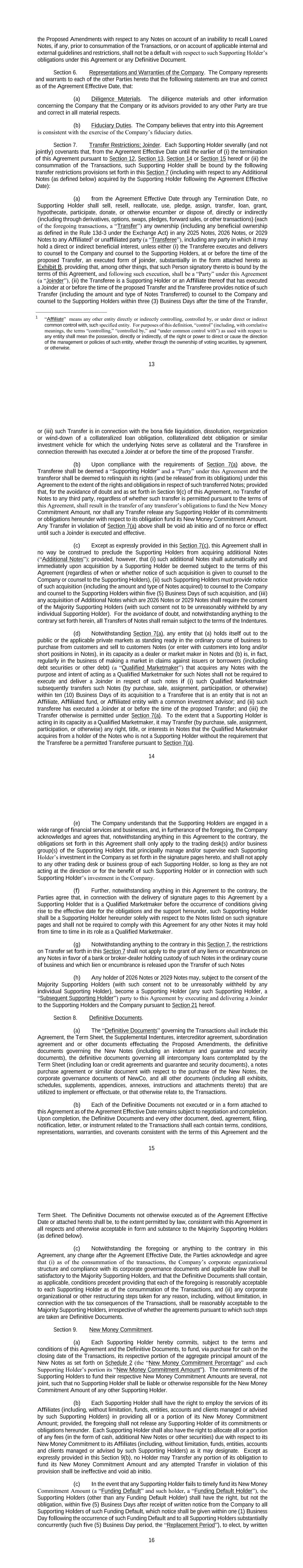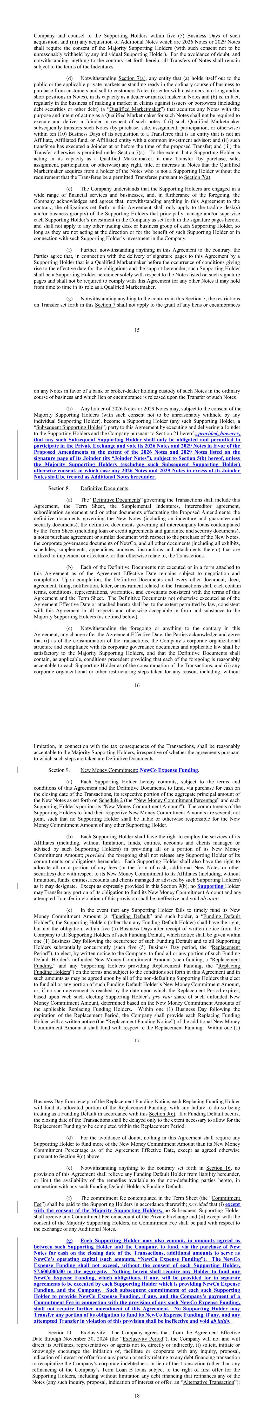 •adequately addressing the substantial doubt as to our ability to continue as a going concern and satisfy our liquidity needs, including the consummation of our refinancing transactions intended to extend our debt maturities and enhance our liquidity;