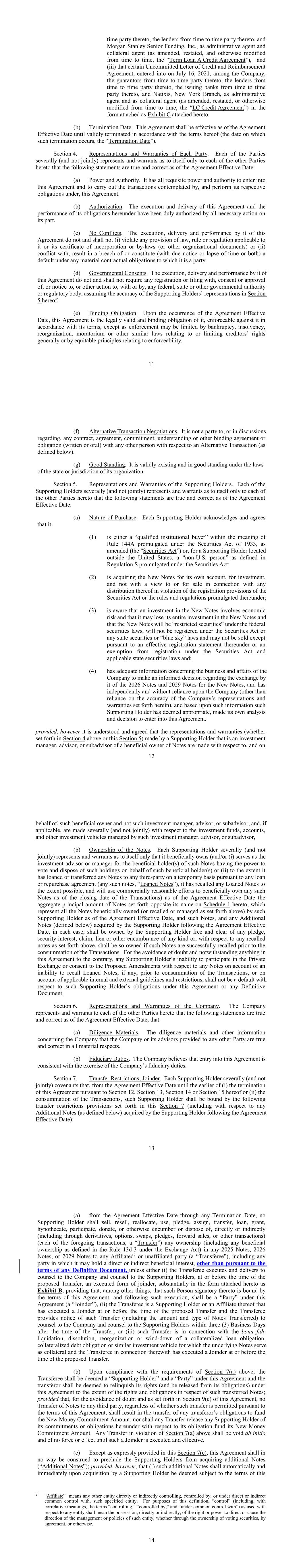b)[ ] CHECK IF EXCHANGE IS FROM BENEFICIAL INTEREST IN A RESTRICTED GLOBAL NOTE TO UNRESTRICTED DEFINITIVE NOTE. In connection with the Exchange of the Owner’s beneficial interest in a Restricted Global Note for an Unrestricted Definitive Note, the Owner hereby certifies (i) the Definitive Note is being acquired for the Owner’s own account without transfer, (ii) such Exchange has been effected in compliance with the transfer restrictions applicable to the Restricted Global Notes and pursuant to and in accordance with the Securities Act, (iii) the restrictions on transfer contained in the Indenture and the Private Placement Legend are not required in order to maintain compliance with the Securities Act and (iv) the Definitive Note is being acquired in compliance with any applicable blue sky securities laws of any state of the United States.